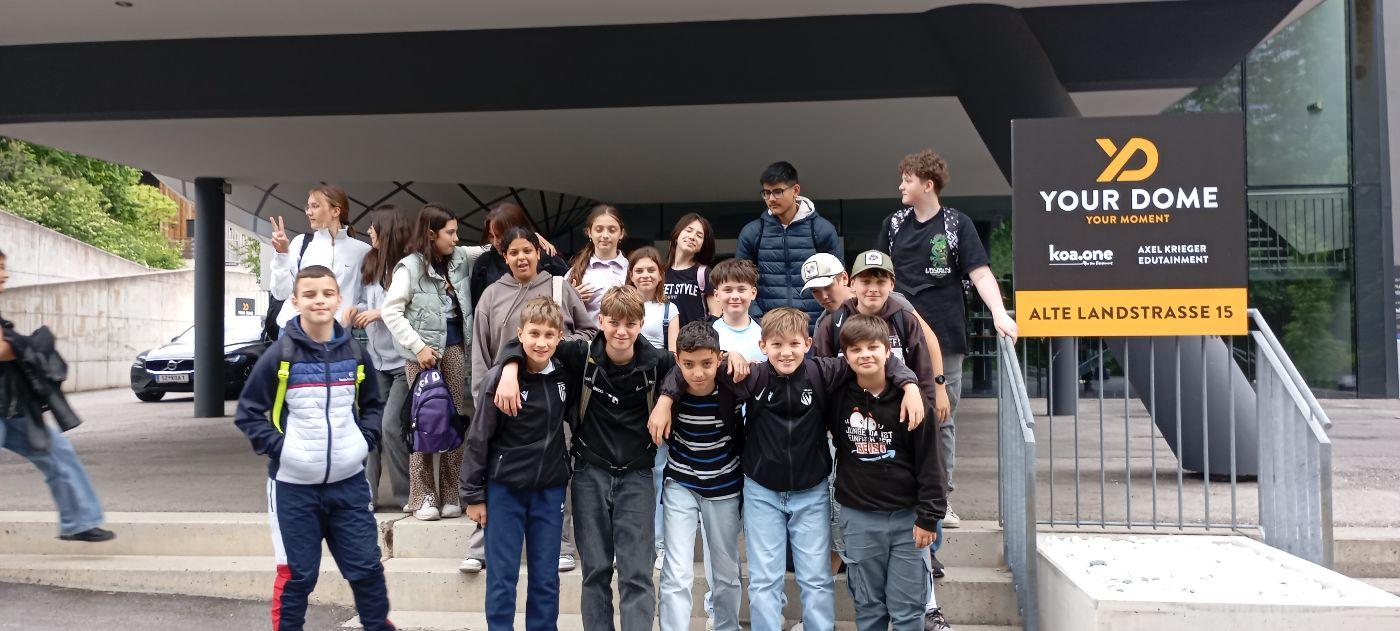 Gemeinsam fuhren die beiden Klassen mit dem Zug nach Schwaz. Schon die Anreise sorgte für Vorfreude und gute Stimmung. Im YourDome angekommen, erwartete die Schülerinnen und Schüler eine beeindruckende 360-Grad-Filmvorstellung.