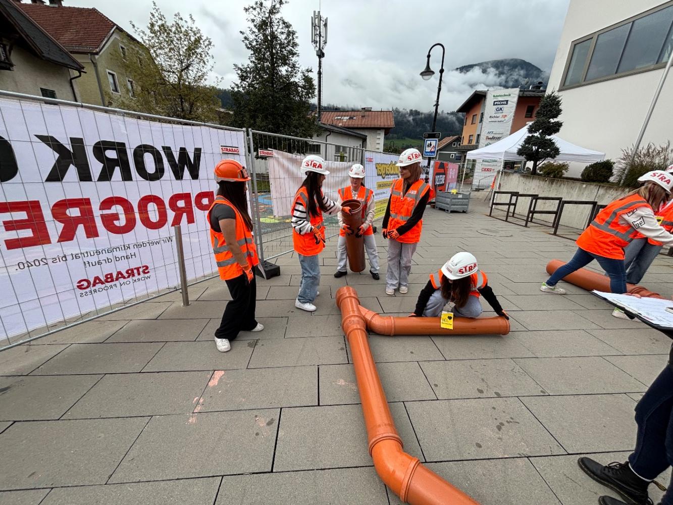 🔹 Bau: Hoch- und Tiefbau hautnah erleben – Betonschalung vorbereiten 🧱 und Rohre zusammenstecken 🛠️.