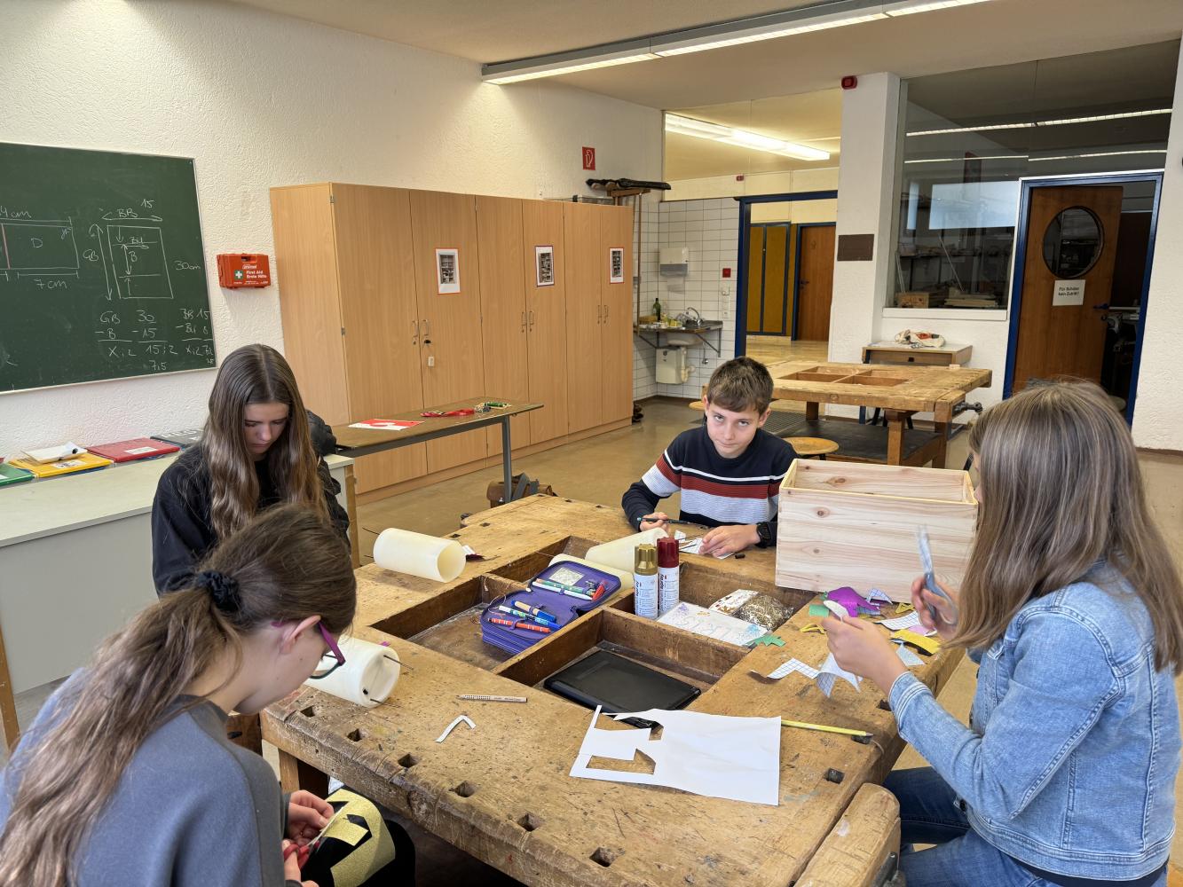 Unsere Direktorin Frau Zoller stimmte der Projektidee erfreulicherweise ohne Zögern zu. Im modernen TuD Unterricht geht es darum, dass die Schüler:innen selbst Projekte planen lernen und so wurde eine Checkliste mit Materialen erstellt, die benötigt werden. Ziel war es die meisten dekorative Elemente selbst herzustellen.