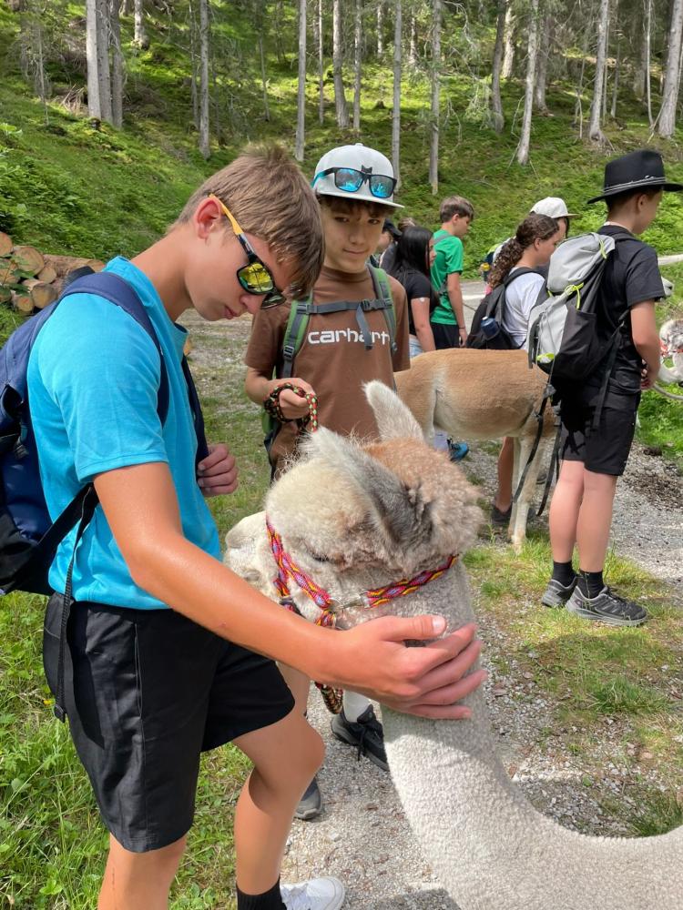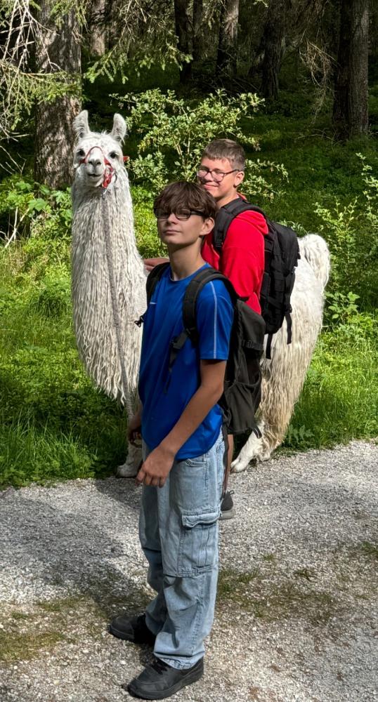 Ich hatte ein Lama, was sehr stur war. Es hieß Sanchez und war volle flauschig. Es war richtig witzig mir ihm. Er wollte manchmal einfach nicht weiter gehen und ich musste ihn schieben. Er war voll süß. Besonders, als wir in der Nähe vom Jausenplatz waren, ist er einfach losgelaufen. Erst hatte ich Panik,, aber Renate hat uns dann gesagt, dass das der Jausenplatz ist, den sie lieben.