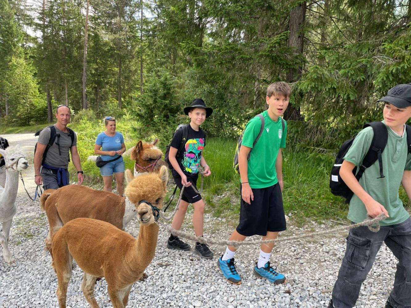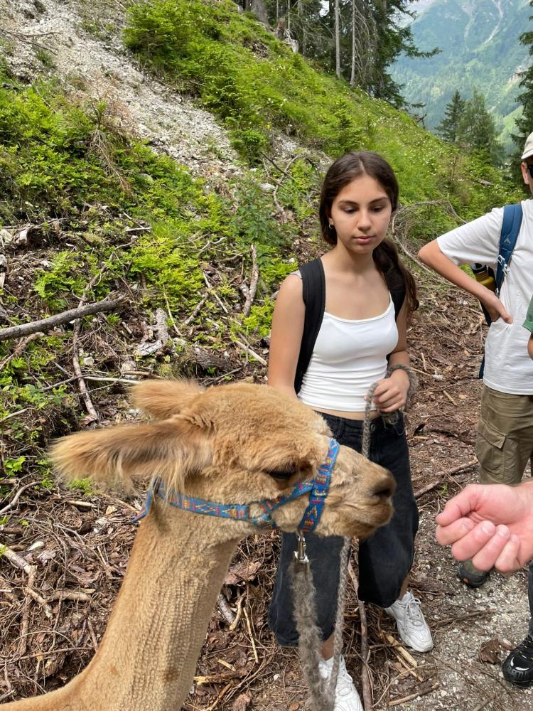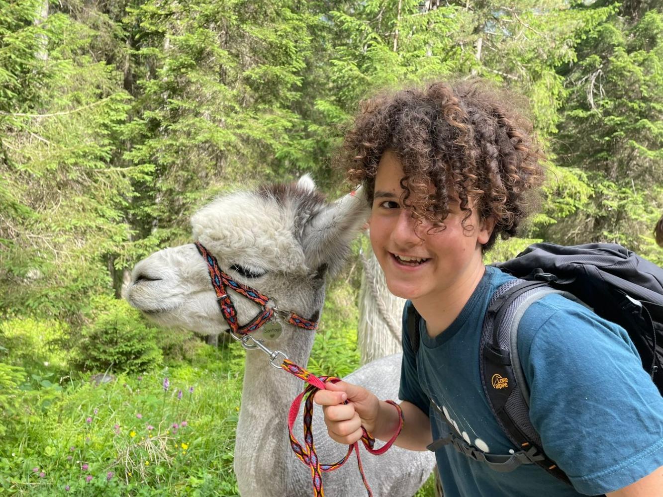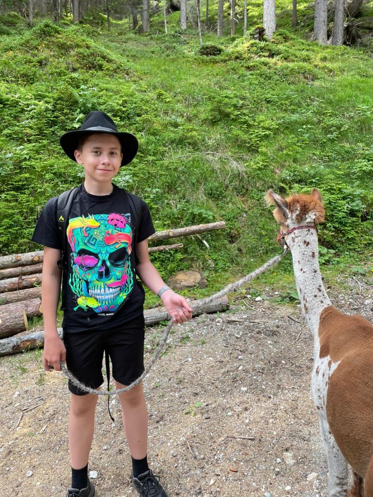 Die Alpakawanderung am 23.6. war sehr interessant. Shimon und ich hatten ein Alpaka namens Aramis bekommen. Es war eine sehr schöne Wanderung und unser Alpaka war recht entspannt. Nur, dass Aramis alle 10 Sekunden Pflanzen essen wollte. Aber die Wanderung war sehr schön und ich würde es jedem empfehlen!