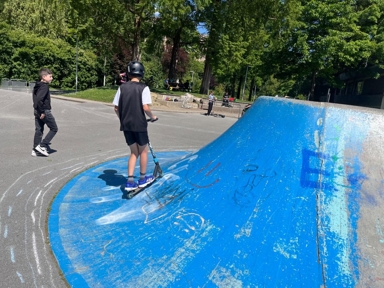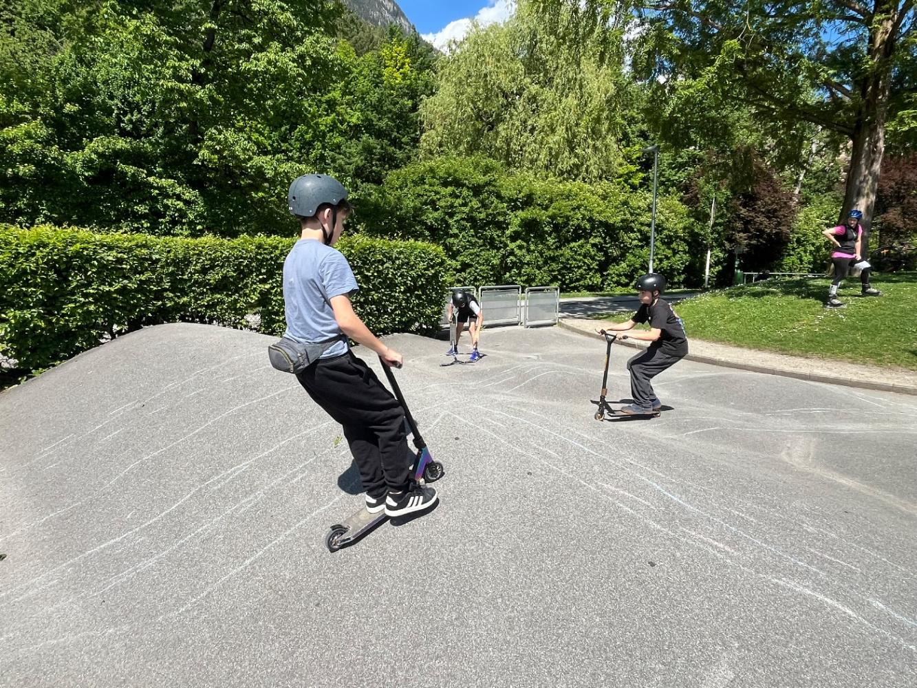 Im Skaterpark konnten die Schülerinnen und Schüler ihre Fähigkeiten unter Beweis stellen und neue Tricks lernen. Es war beeindruckend zu sehen, wie mutig und geschickt sie sich auf den Rädern bewegten. Die Begeisterung und Freude waren überall spürbar.
