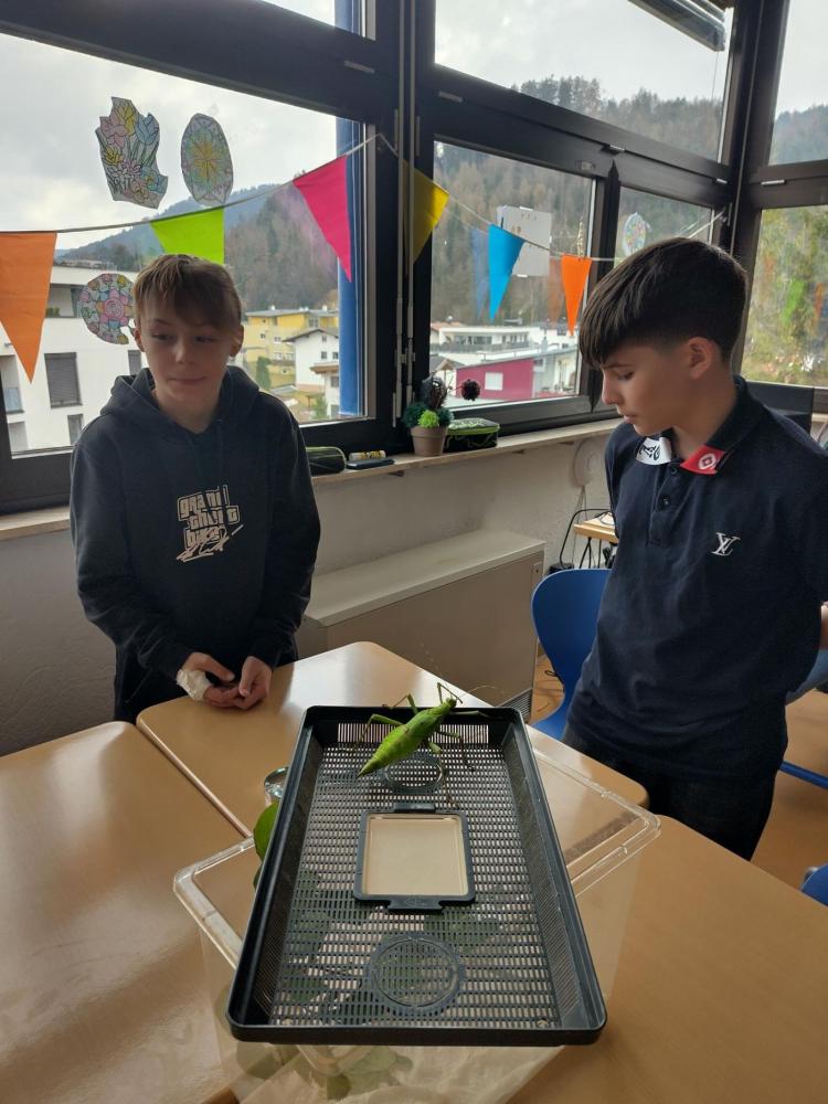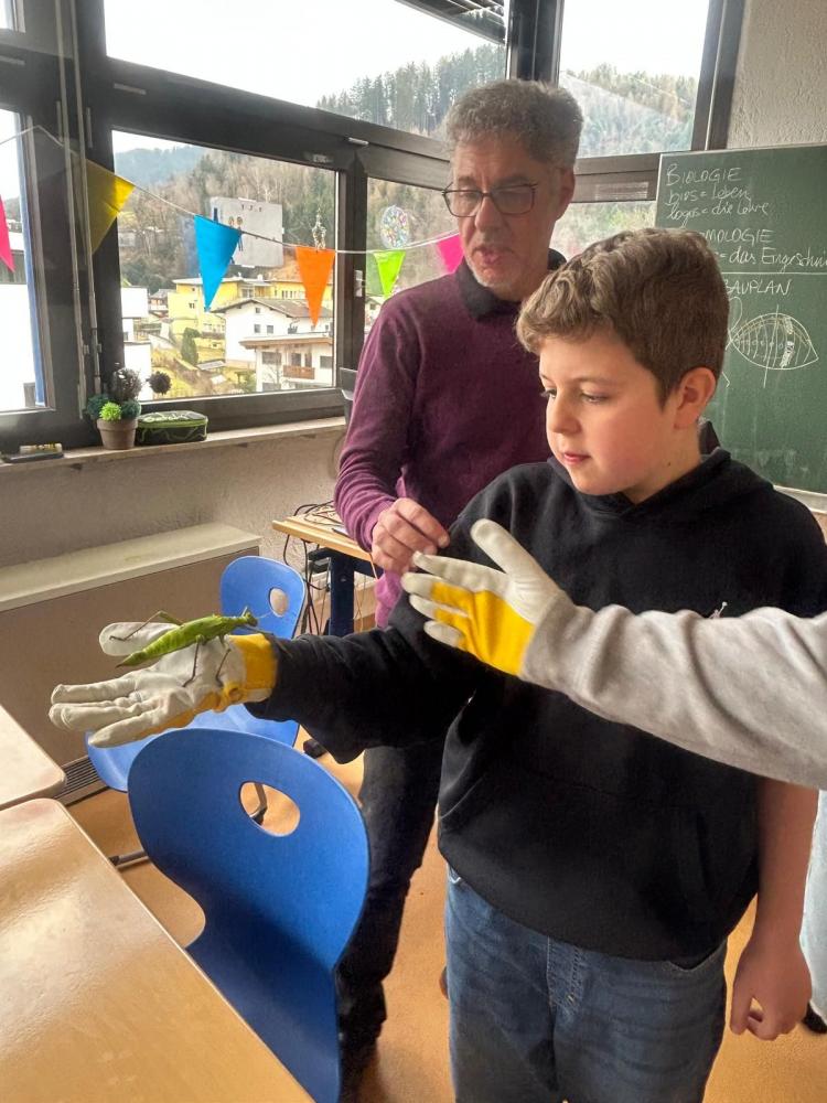 Die Kinder der Klasse 2a verfolgten mit großem Interesse die Erklärungen und Erzählungen der Natopia-Experten Kurt Lechner und Wolfgang Bacher über die größte und vielfältigste Tiergruppe der Welt: die Insekten. Mit multimedialer Unterstützung und vor allem durch lebende Exemplare besonders eindrucksvoller Insektenarten wurde der Insektenunterricht zu einem unvergesslichen Erlebnis.