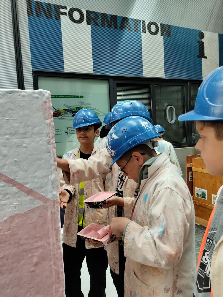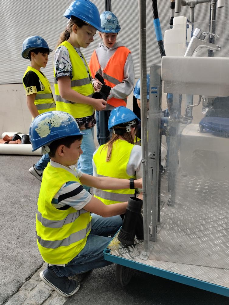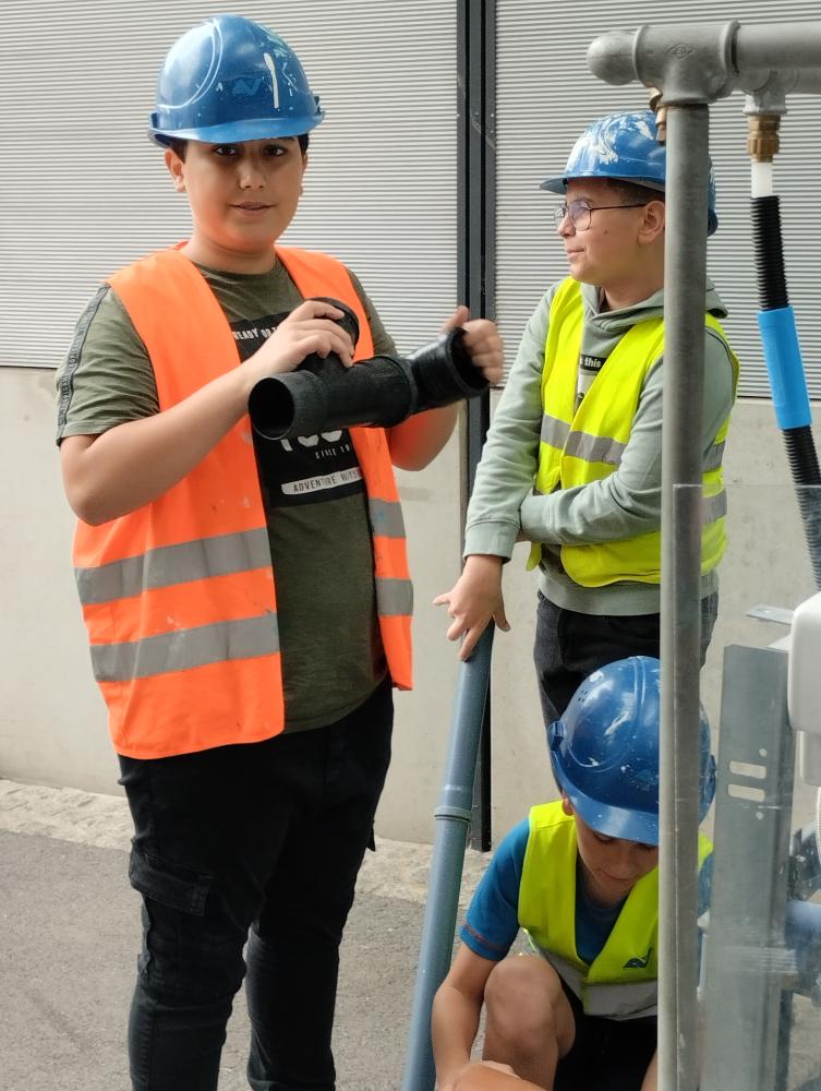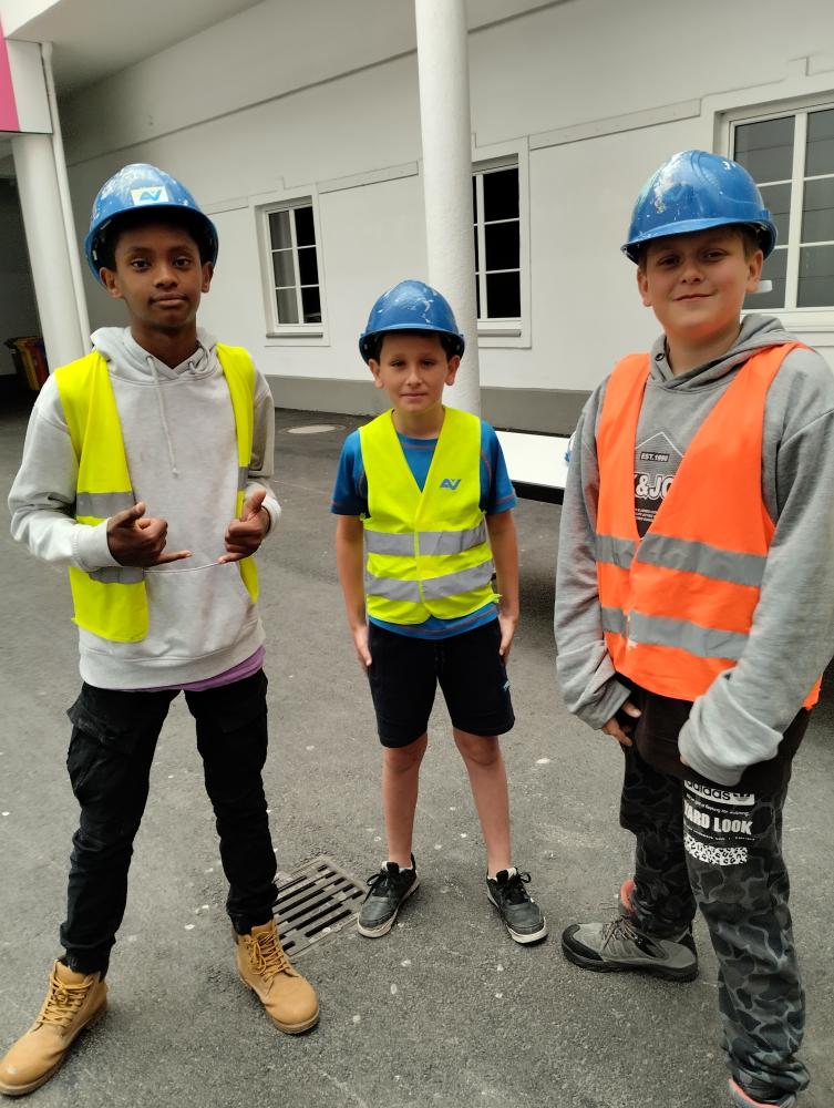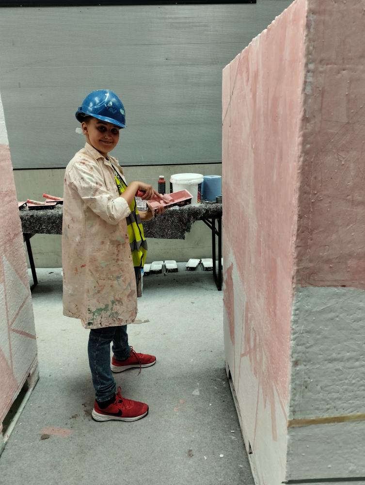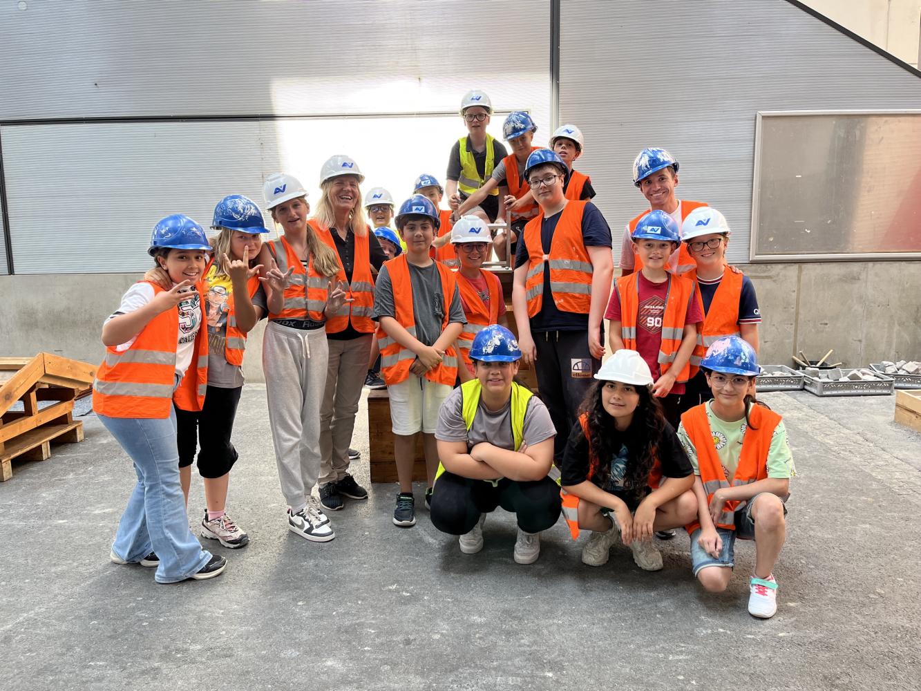 Mit diesen Fragen setzten sich die 1a und die 1c im Rahmen des Projekts „Erlebniswelt Baustelle“ in der Innsbrucker Messe auseinander. Die Schüler*innen konnten spielerisch in 14 Berufe hineinschnuppern, die es für die Errichtung von Bauwerken braucht – vom Bodenleger über den Maurer, Zimmerer, Elektriker und Installateur bis hin zum Dachdecker, Glaser, Spengler und Metallbautechniker. Im Anschluss an eine kurze Berufserklärung konnten die Kinder an einzelnen Stationen berufstypische Tätigkeiten gleich ausprobieren: In kleinen Gruppen durften sie planen, tischlern, zimmern, mörteln, mauern, pflastern, zimmern, biegen und vieles mehr. Alle waren mit viel Eifer dabei, die gestellten Aufgaben zu erfüllen. Dabei kam der Spaß nicht zu kurz, ebenso wie die Erfahrung, dass so eine Tätigkeit auch anstrengend sein kann.