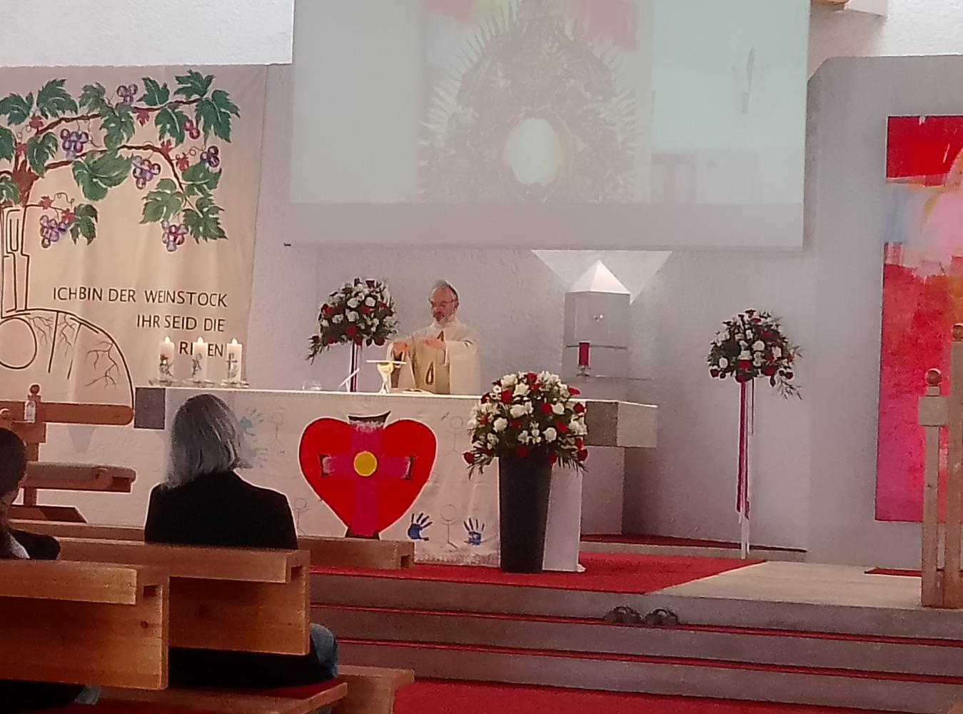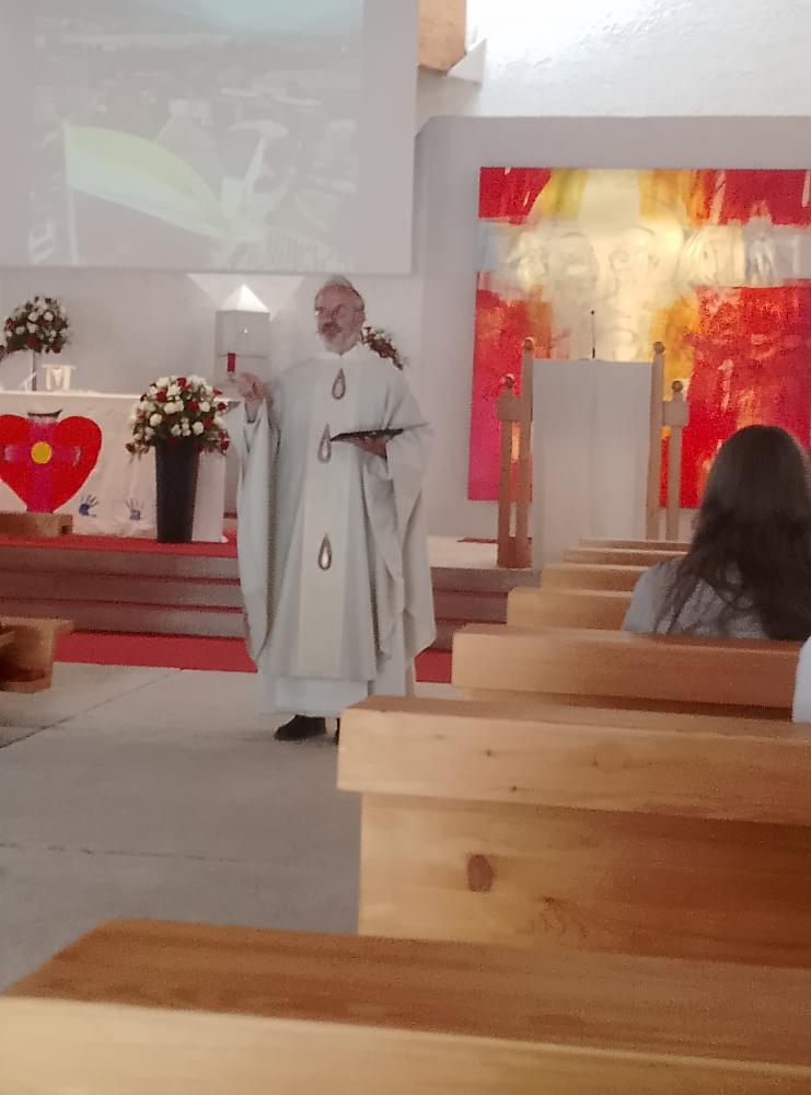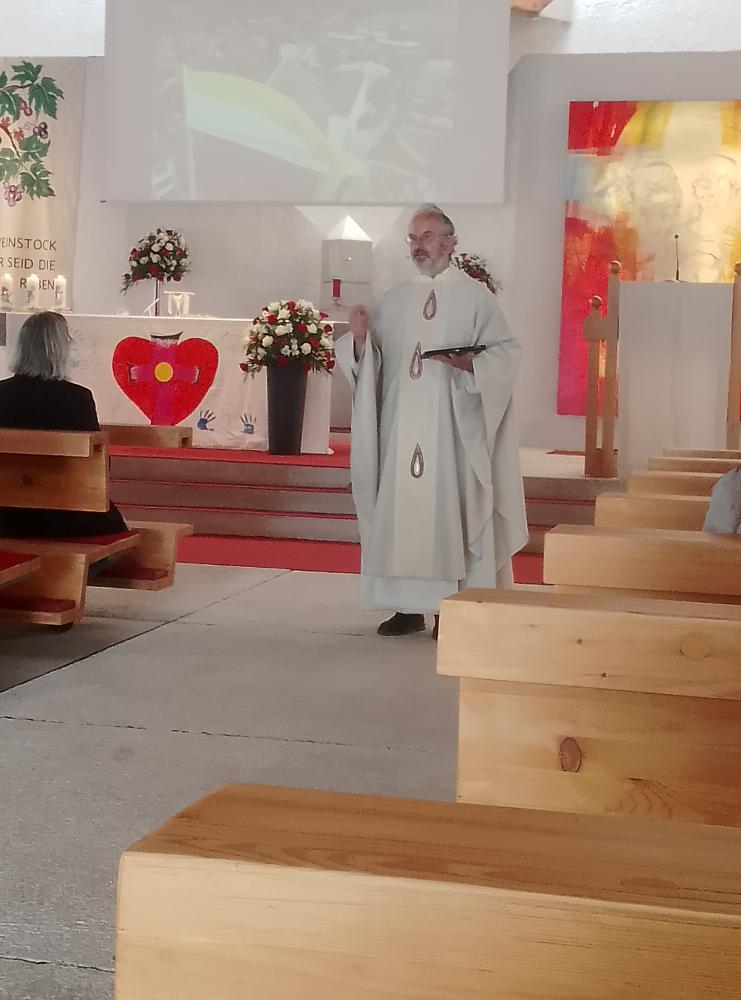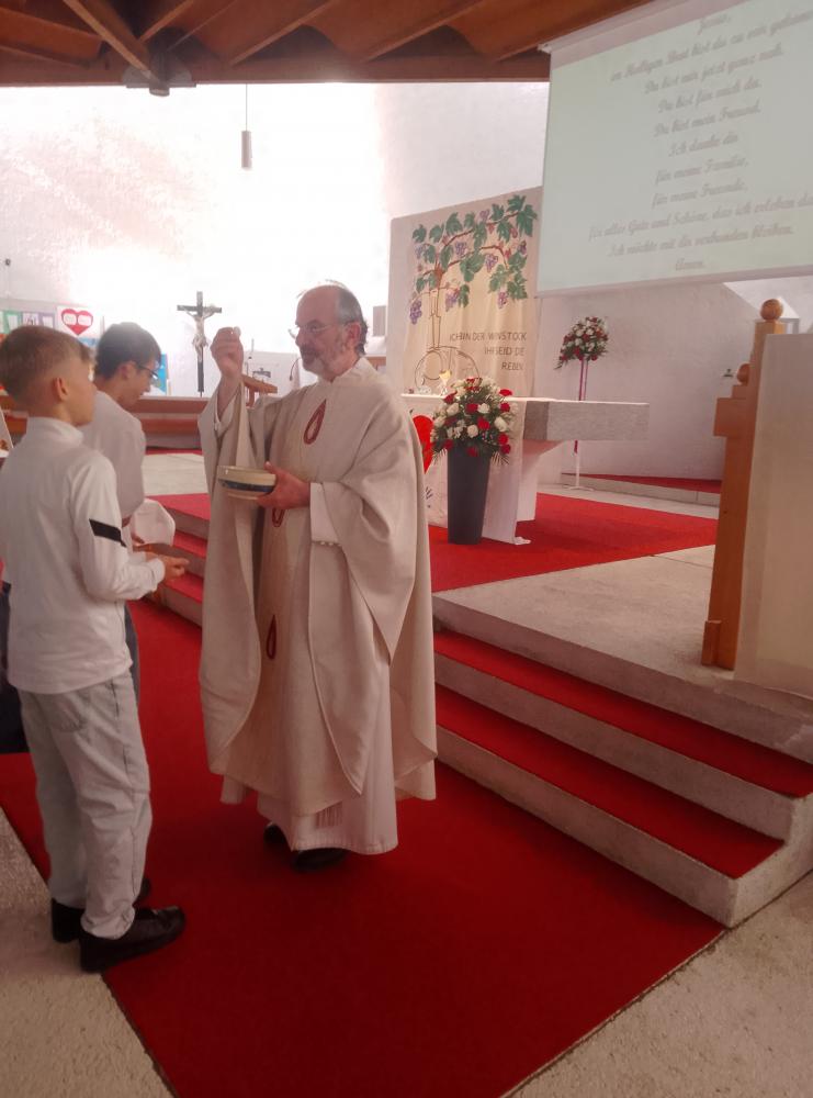 Pfarrer Christoph führte die Schulgemeinschaft mit einfühlsamen und inspirierenden Worten durch den Gottesdienst. Seine Ansprache betonte die Bedeutung des Fronleichnamsfestes und ermutigte die Schüler, ihren Glauben im Alltag zu leben und zu teilen.