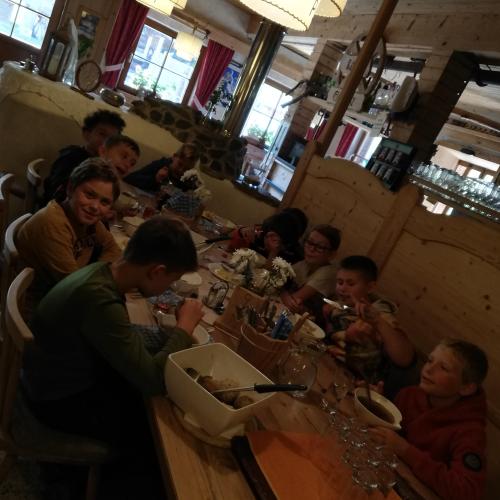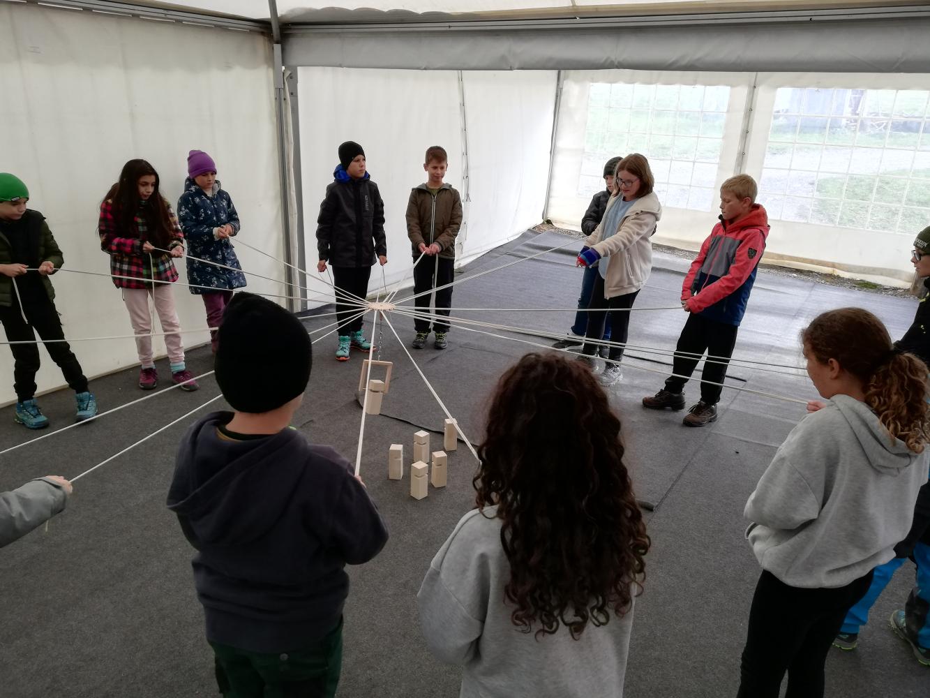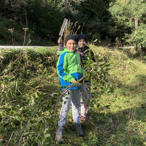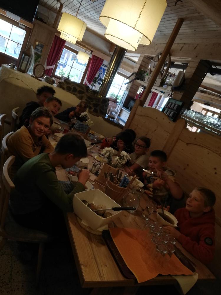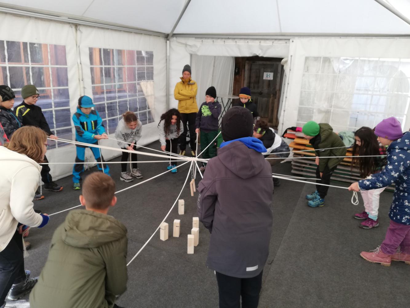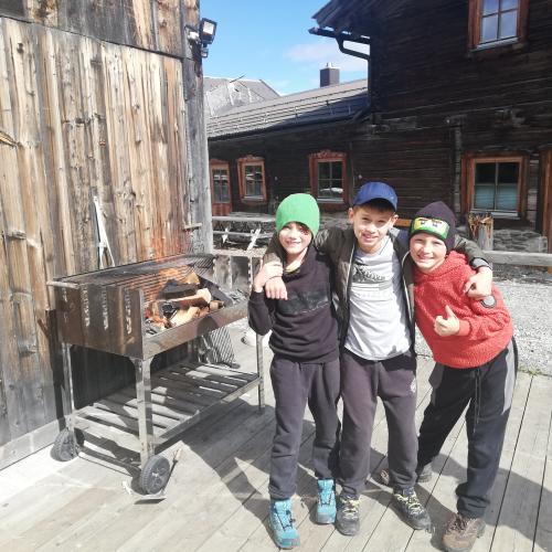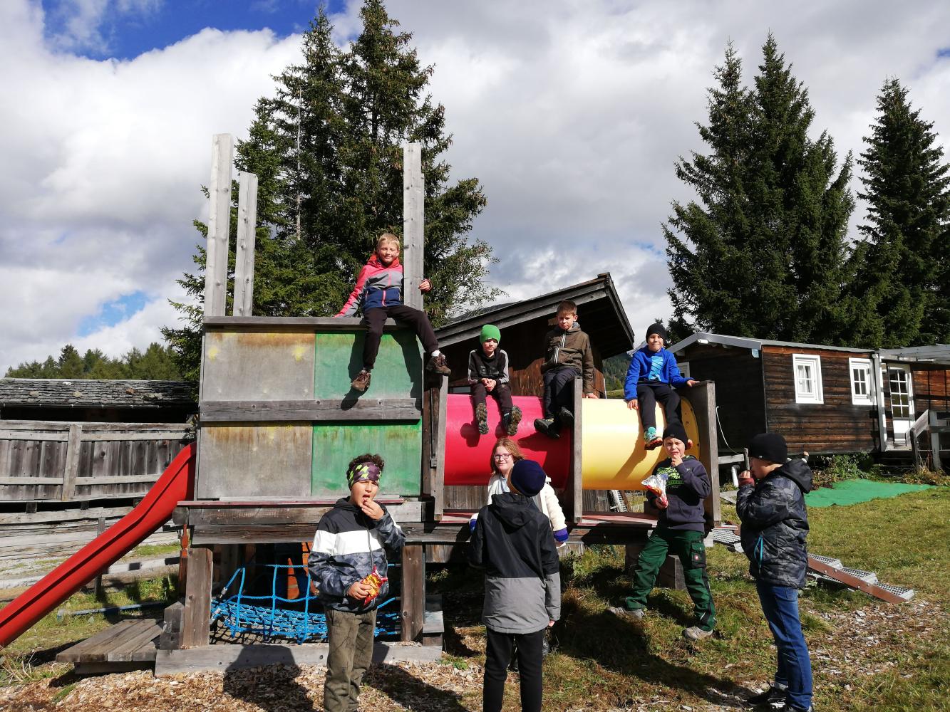 Zimmer beziehen, essen, trinken, gemeinsam spielen, kooperieren, Nachtwanderung „Hier im Wald ist unheimlich! Können wir bitte wieder in die Hütte gehen?“ in kleinen Lagern zu dritt oder fünft, und jeder in seinem Schlafsack schlafen (die einen mehr die anderen weniger Stunden pro Nacht. Manche Kinder sind echte Frühaufsteher, haben wir kennen gelernt ☹) mit kleinen Sägen Äste fürs Stockbrot herstellen, Rinde abmachen, Feuer machen und Würstchen grillen und Stockbrot backen. Gesättigt wieder ins Tal und mit dem Zug zurück.