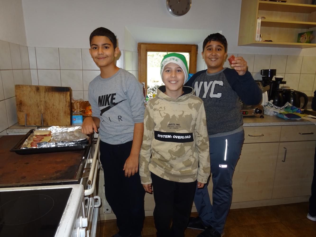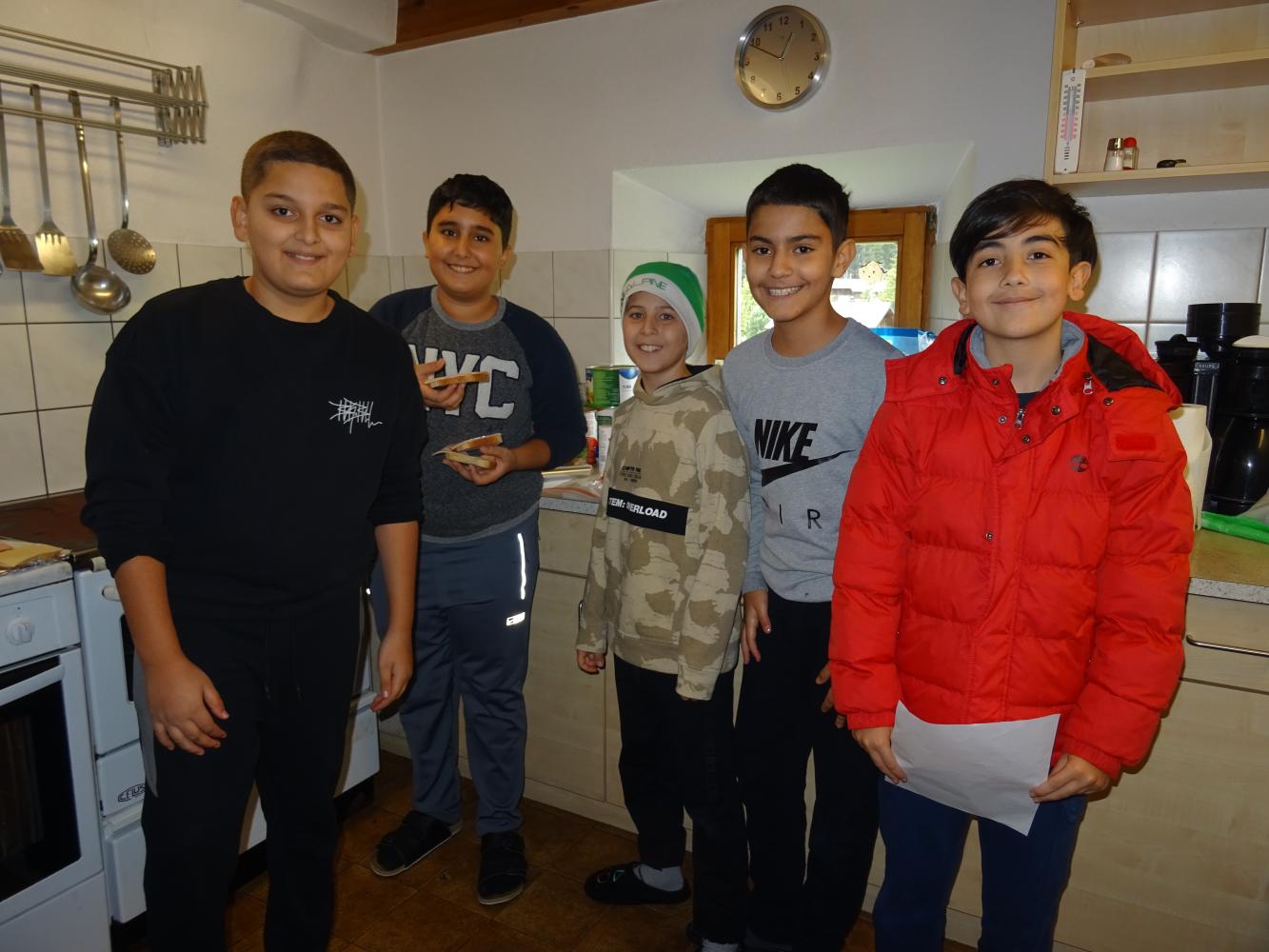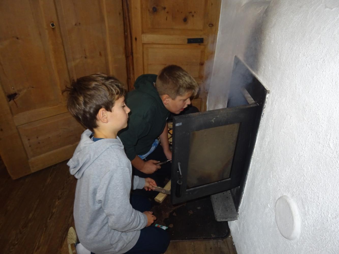 Gleich zu Beginn mussten die beiden Stuben beheizt werden. Zwei Teams von Feuerwächtern versuchten sich jeweils im Zustandebringen und Aufrechterhalten eines Feuers. Alle Schüler*innen waren in eines der 4 Kochteams eingeteilt und somit für die Zubereitung der jeweiligen Mahlzeiten, das Servieren und schließlich das Aufräumen der Küche zuständig. Durch die Bank bewiesen sie dabei Geschick und Interesse.