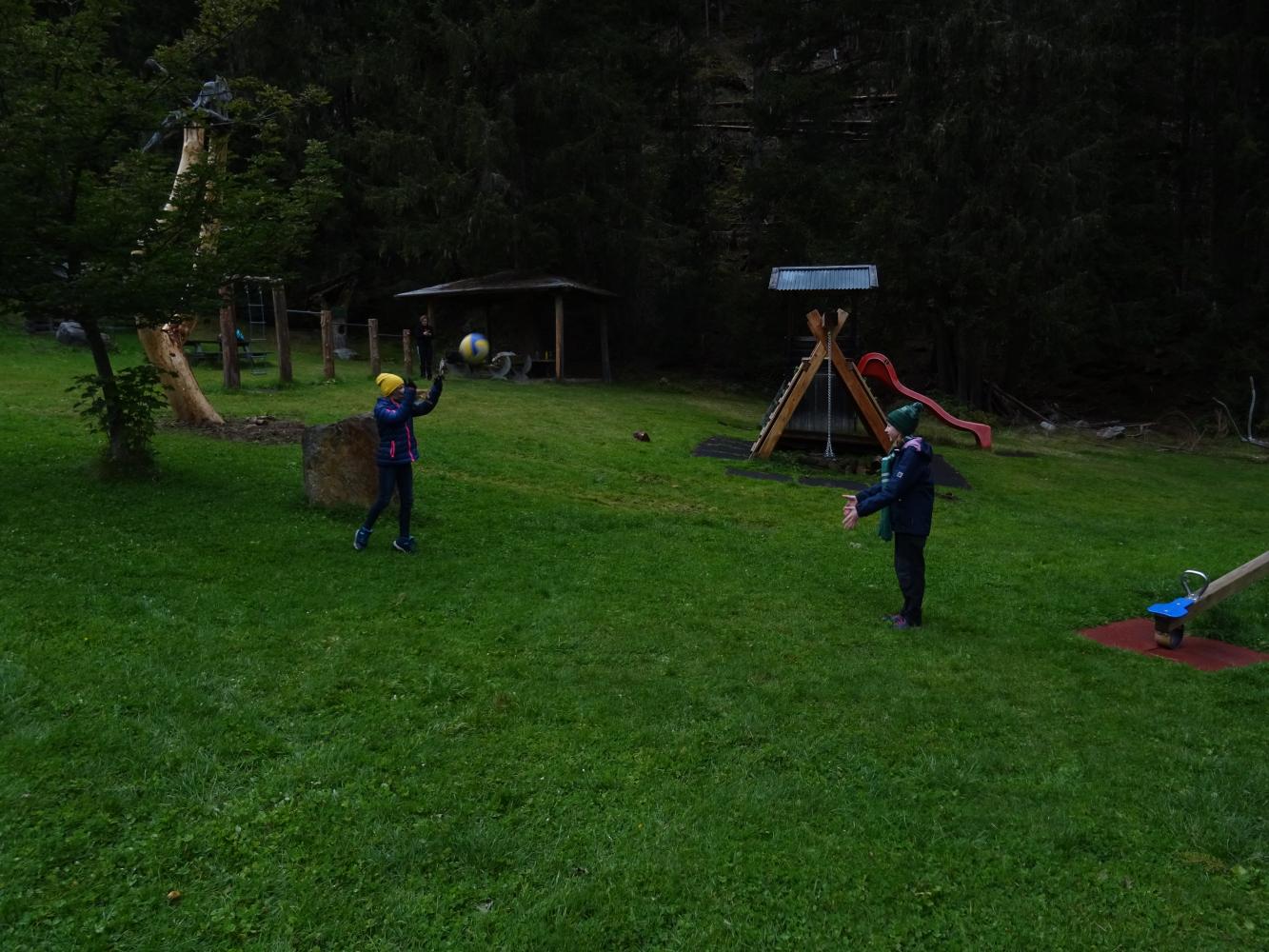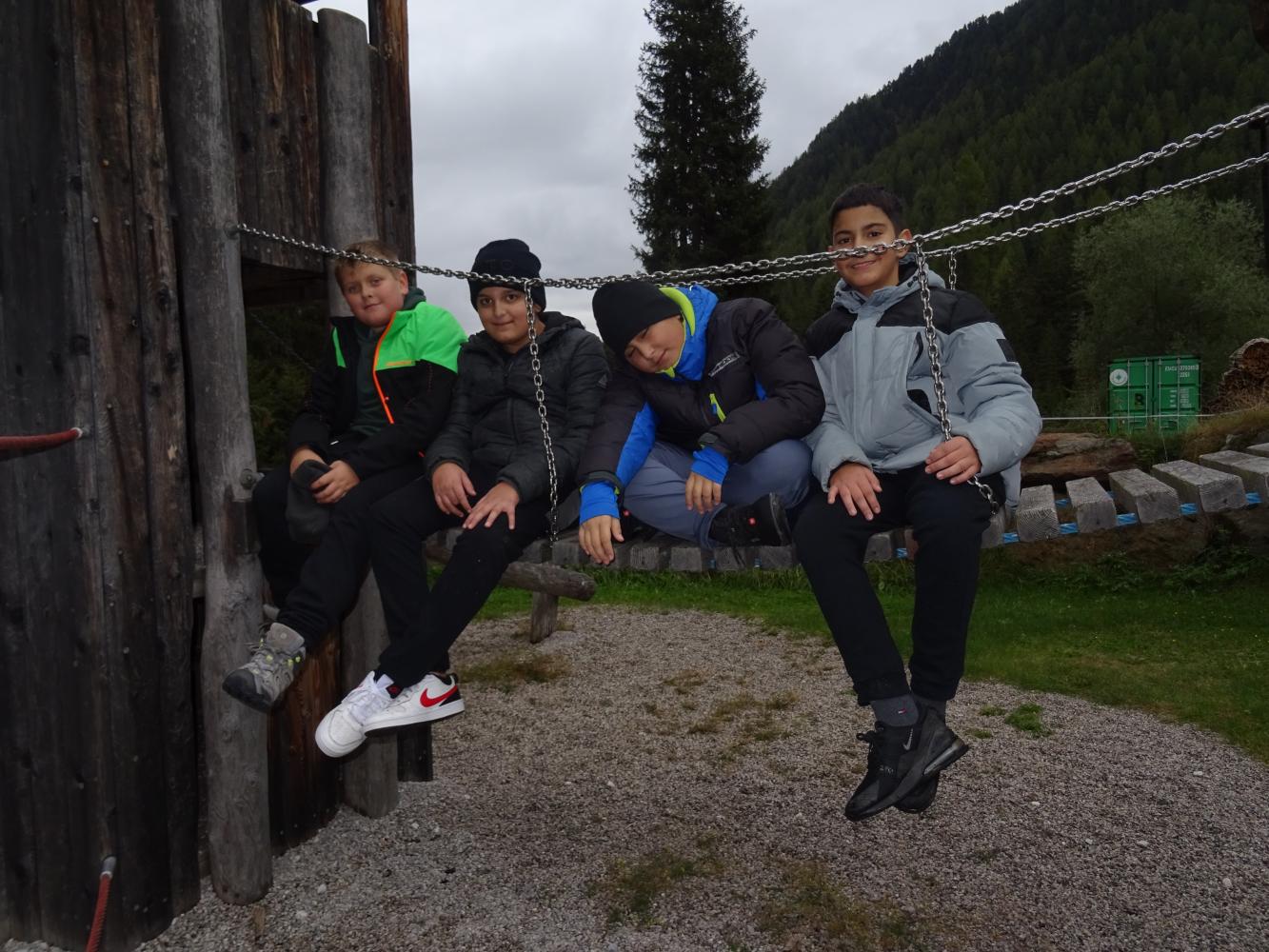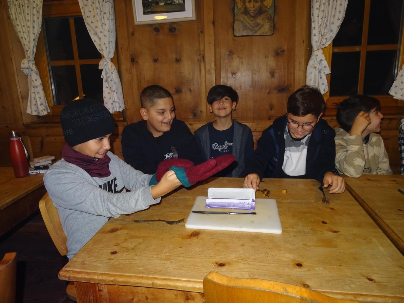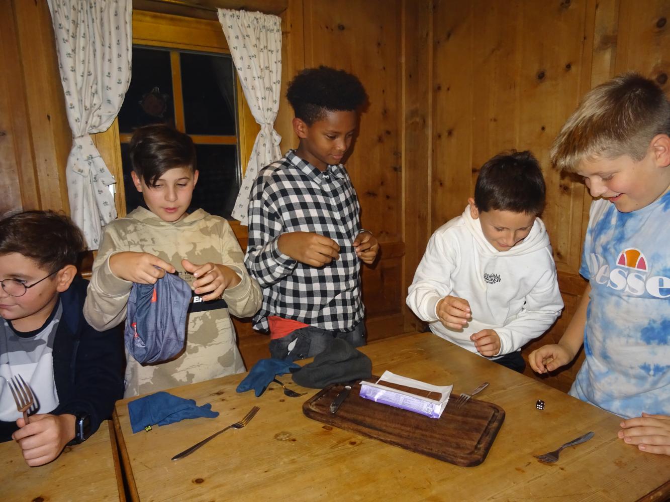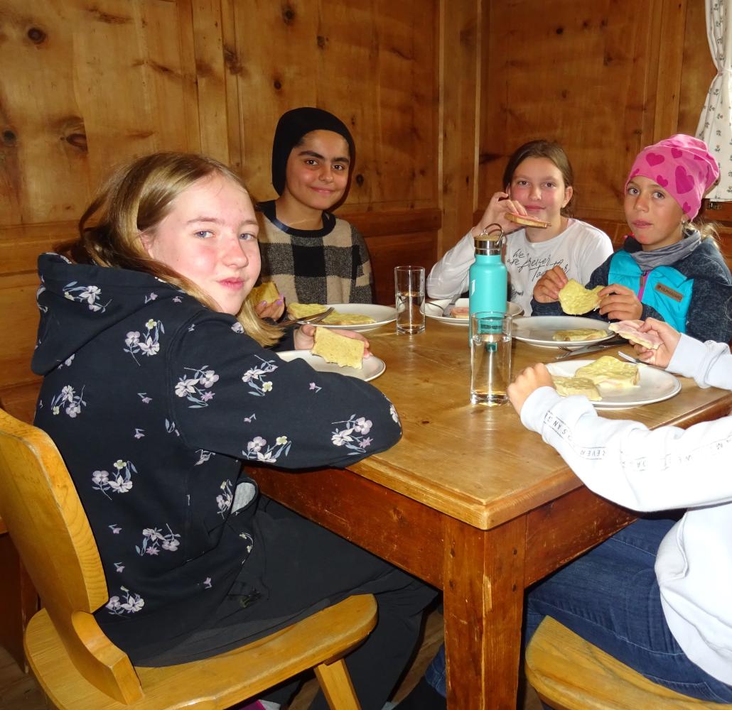 Am Vormittag gab es noch einige Gemeinschaftsspiele, am Nachmittag wanderten wir zur Gleirschalm. Anschließend stellten die Schüler*innen auf dem Spielplatz in Gruppen Kunstwerke aus Naturmaterialien her. Ein absolutes Highlight war das Schokoladewettessen nach dem gelungenen Abendessen.