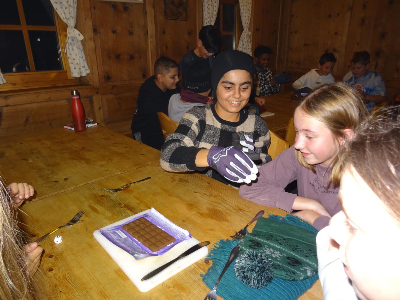 Mir hat das Schokoladeessen Spaß gemacht, obwohl ich nur ein Stück Schokolade bekam. Das Schlafen war nicht so gut, weil jemand geschnarcht hat.
