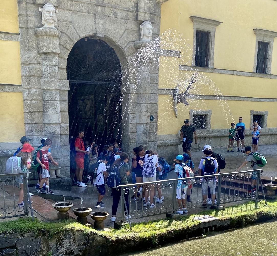 Am Montag, 27.6.2022, fuhren die Klassen 1a und 1b gemeinsam nach Anif, um die dortigen "Wasserspiele" zu besuchen. Es war sehr heiß, wodurch die lustigen "Wasserstreiche" des Grafen Marcus Sitticus begeisterten Anklang bei allen Anwesenden fanden ;-)