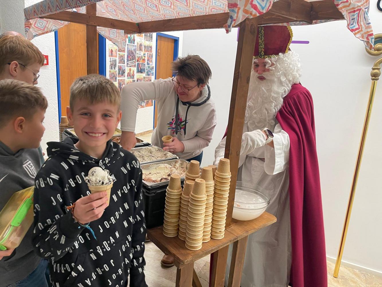 - Frau Gapp-Wohlfahrter und der Nikolerch schöpften über 190 Kindern sowie mehr als 20 Lehrpersonen je eine Kugel leckeres Eis