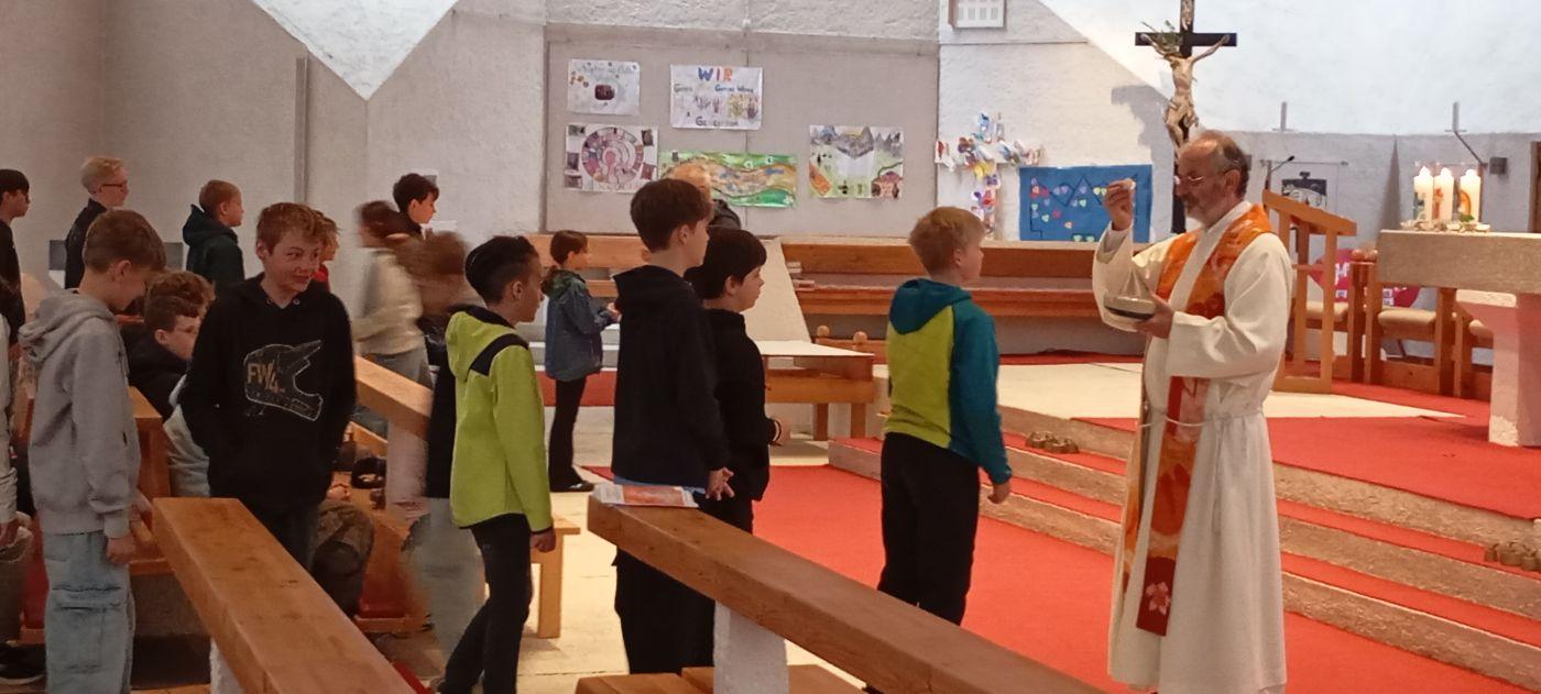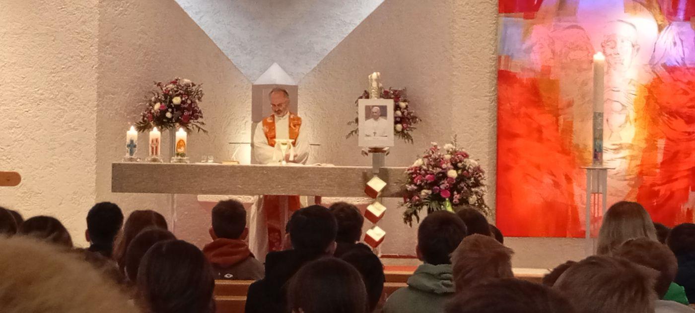 Am Donnerstag, den 24. April 2025, feierte unsere Schule den traditionellen Ostergottesdienst. Beginn war am Ostergrab in der Alten Pfarrkirche, wo uns Pfarrer Christoph die Geschichte der Emmausjünger erzählte: Zwei Jünger, enttäuscht und traurig nach dem Tod Jesu, begegnen auf ihrem Weg einem Unbekannten. Erst beim Brotbrechen erkennen sie ihn – es ist Jesus selbst. Diese berührende Erzählung begleitete uns durch den ganzen Gottesdienst.