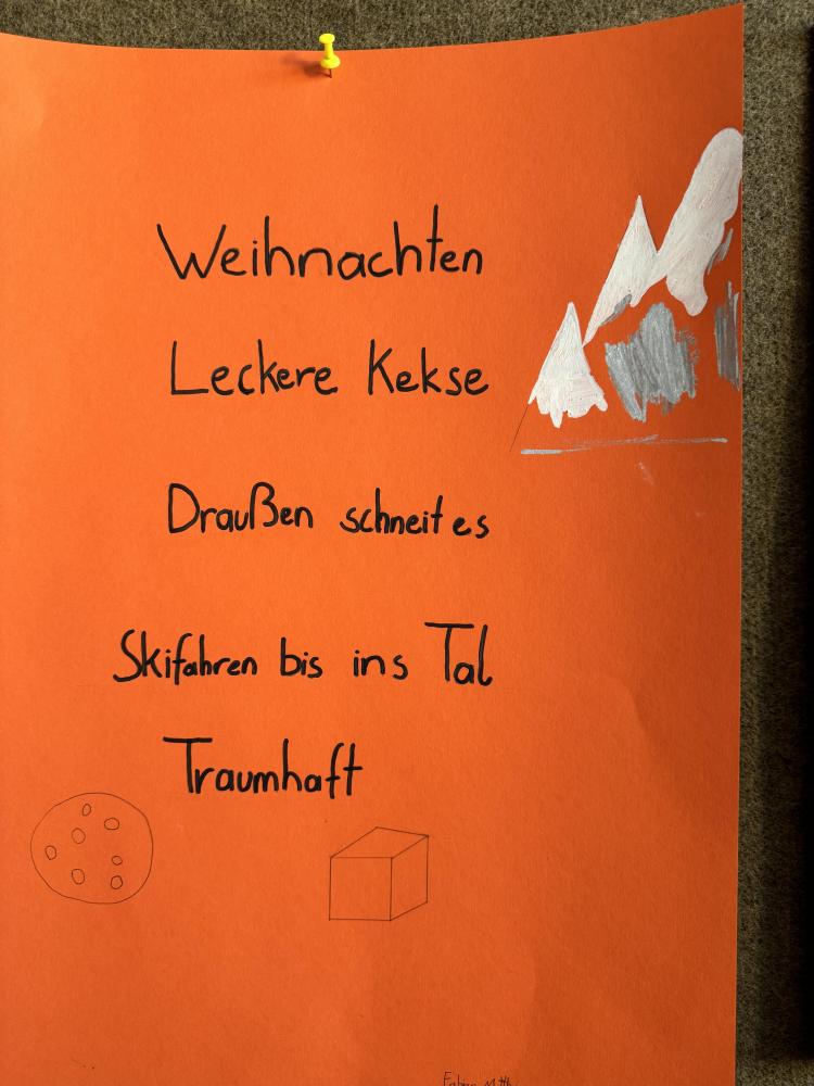 Die AHS Gruppe der 4a und 4b sind seit Wochen Gedichten auf der Spur. Sie werden analysiert, interpretiert und auch präsentiert. Zum Abschluss dieses Unterrichtsthemas versuchten sich die Schüler:innen selbst ihre poetische Ader zu finden und es ist meiner Ansicht nach allen gelungen.