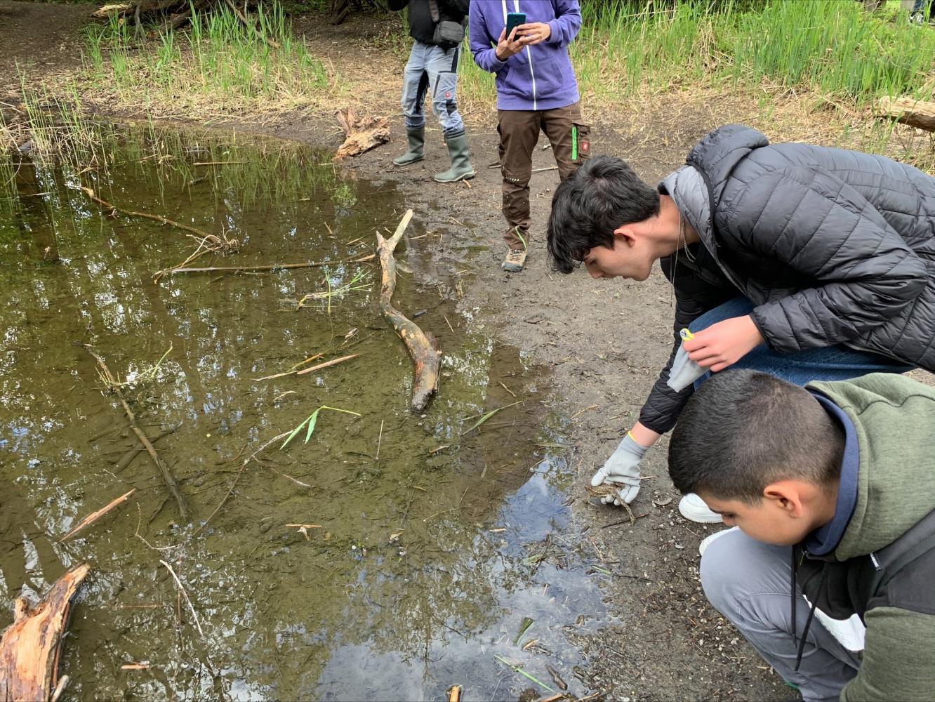 Den letzten Schnuppertag verbrachten die SchülerInnen auch ganz im Zeichen der Umwelt und des Naturbewusstseins – sie bekamen eine private Führung vom Biologen Dr. Timo Kopf durch das Gebiet des Völser Teichs und packten auch dort fleißig mit an. Unter anderem wurde erklärt, dass der Völser Teich ursprünglich in der Kaiserzeit als Badeteich angelegt wurde, dann jedoch verlandete und anschließend zum Schutz der Biodiversität wieder ausgebaggert wurde. Beispielsweise befindet sich neben anderen Froscharten auch der in freier Wildnis relativ seltene Laubfrosch beim Völser Teich, in ganz Tirol gibt es nur mehr drei Orte (Kramsach, Völs, Lech) an denen Laubfrösche leben. Nachts wandern die Frösche auch gerne in Richtung der Seesiedlung, wo sie dann regelmäßig von Autos überfahren werden oder in Kanäle reinfallen. Die Letzteren können durch Anheben des Kanaldeckels jedoch wieder befreit und beim Völser Teich entlassen werden (13 lebende Frösche wurden von den Viertklässlern gerettet).