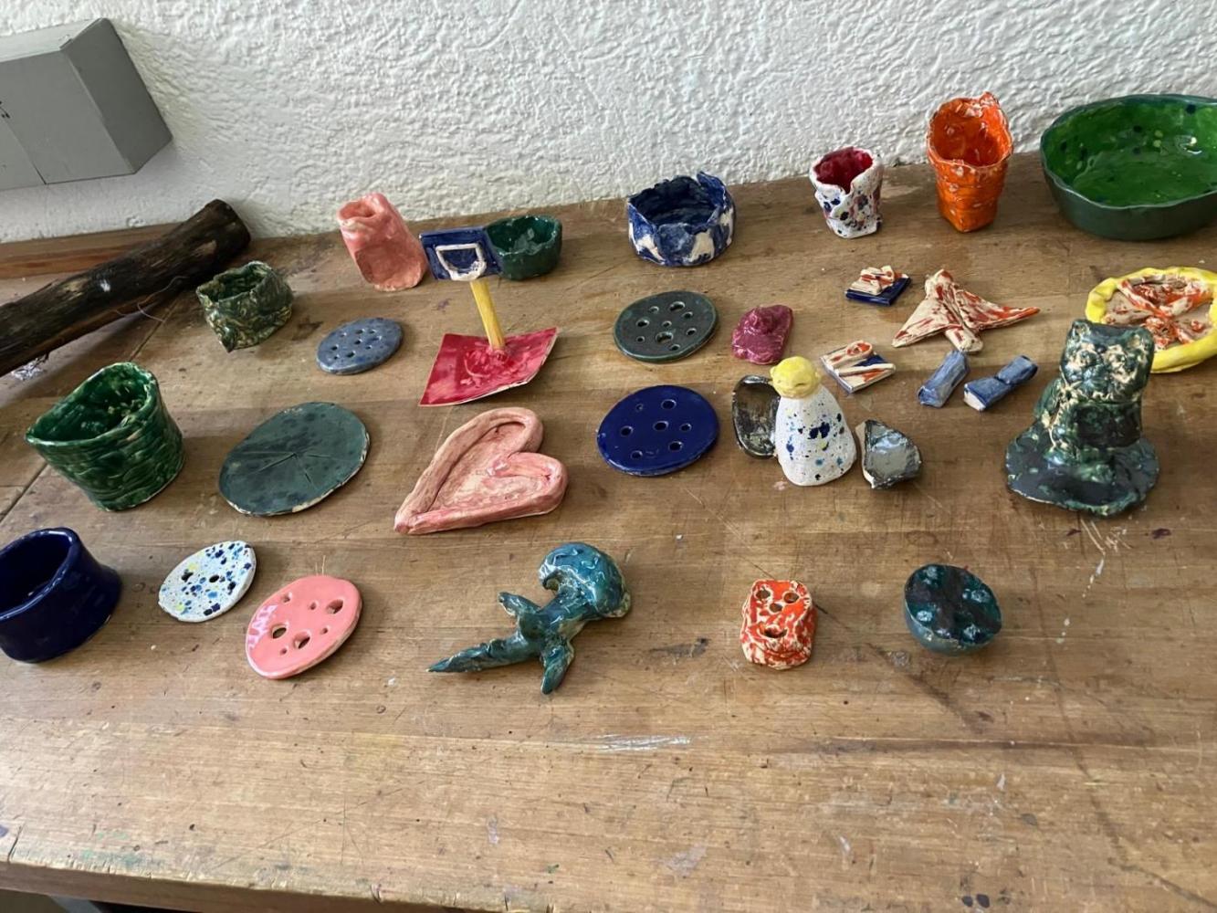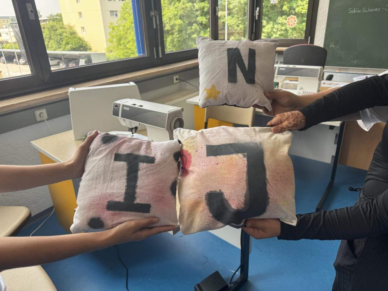 Im Sinne der Nachhaltigkeit stand Upcycling im Fokus: Aus Stoffresten entstanden liebevoll gestaltete Polster, die mit eigenen Motiven und Textilsprays verziert wurden. Andere nähten praktische Taschen, einige wagten sich ans Sticken oder Häkeln, wieder andere entdeckten das Arbeiten mit Ton für sich.