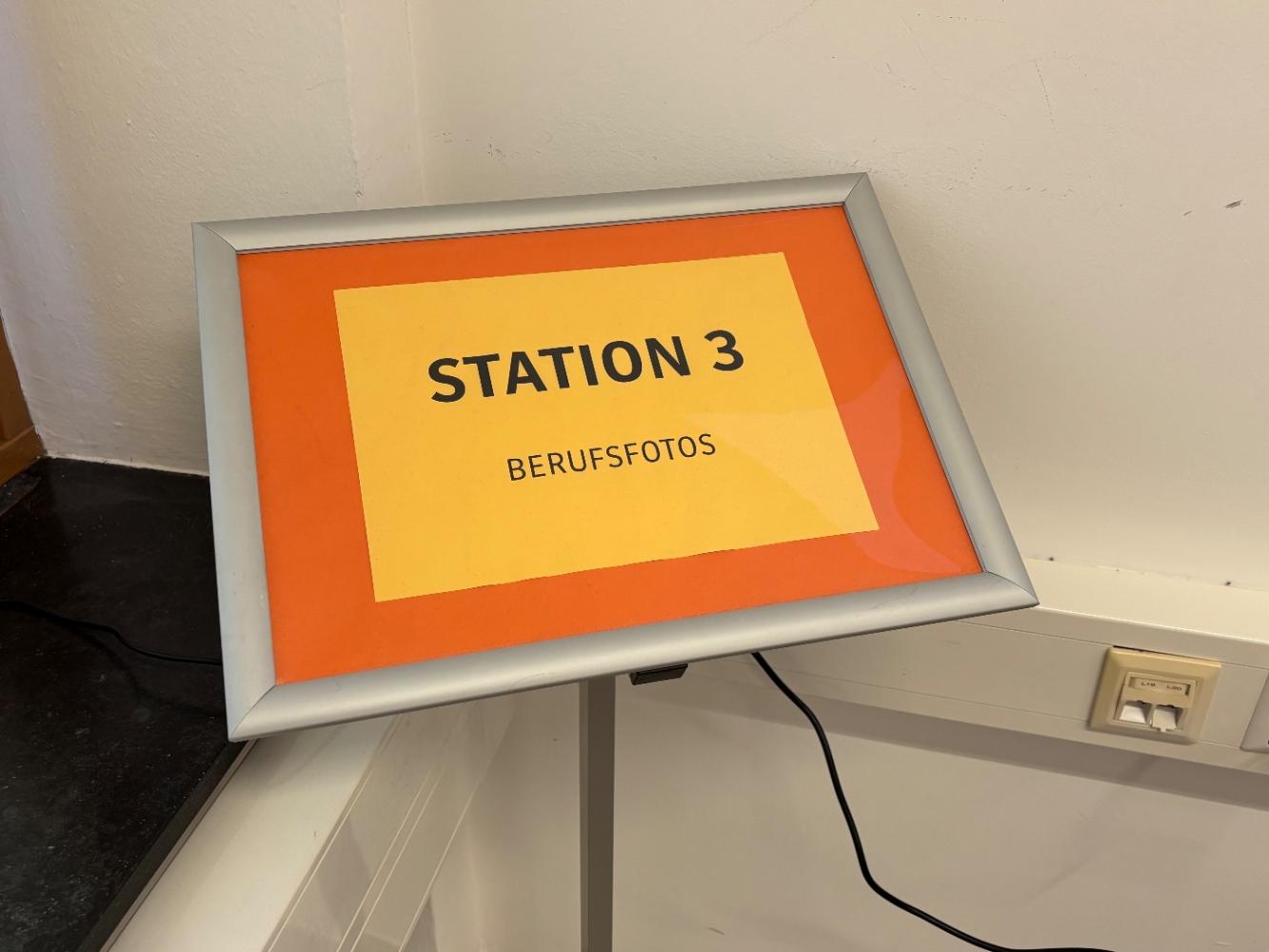 - An der 3. Station beschäftigten sich die Schülerinnen und Schüler mit Berufsfotos und überlegten gemeinsam, welche Aufgaben und Fähigkeiten zu den jeweiligen Berufen passen.