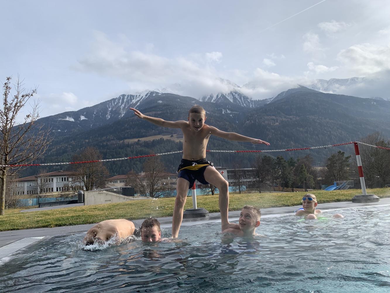 Das Telfer Bad eignet sich für uns Völser:innen besonders gut, da man dort problemlos mit dem Zug hingelangt. Eine Rutsche, ein Rennbecken mit Stockerln, ein Kinderbecken sowie ein auf 32 Grad beheiztes Außenbecken laden auch im Hallenbadbetrieb zu einem gemütlichen Schwimmnachmittag ein.