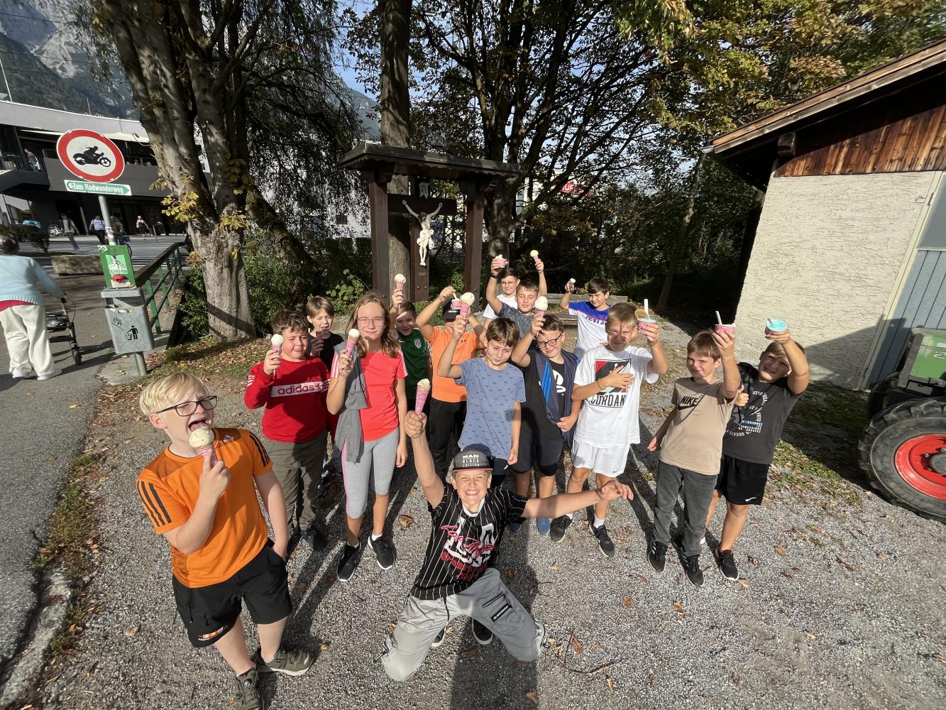 Lehrer und Schüler:innen genossen das milde Herbstwetter und freuen sich auf künftige Einheiten.