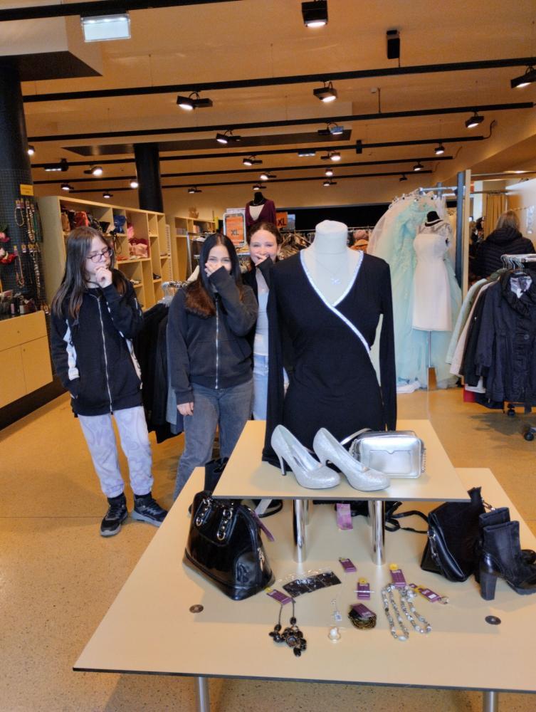 Anschließend wurde die Klasse in vier Gruppen eingeteilt. Jede Gruppe bekam ein Thema (Spielsachen, Abendmode, Reiselektüre, Urlaub) und gestaltete im Verkaufsladen einen eigenen Thementisch. Dabei konnten die Kinder kreativ mit den vorhandenen Waren arbeiten und die Bedeutung von Wiederverwendung hautnah erleben.