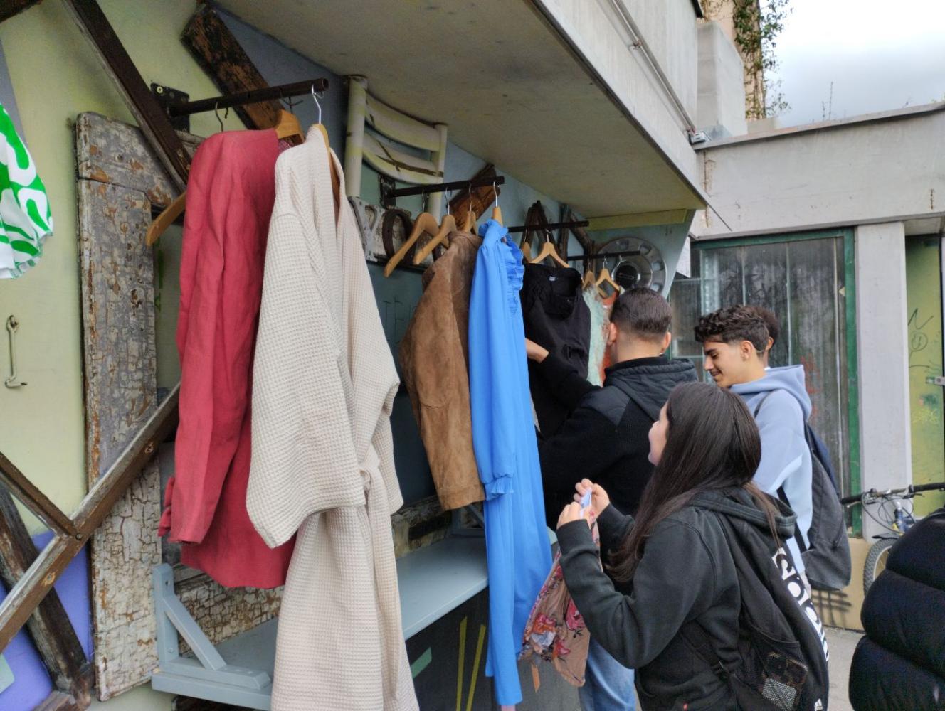 Zum Abschluss besuchte die Klasse die „Wall of Kindness“, eine Wand in der Nähe der Markthalle, an der bedürftige Menschen kostenlos Kleidung mitnehmen dürfen. Dort deponierten die Schüler*innen gemeinsam einige der aus dem Laden mitgebrachten Spenden – ein schöner Ausklang eines lehrreichen Vormittags.