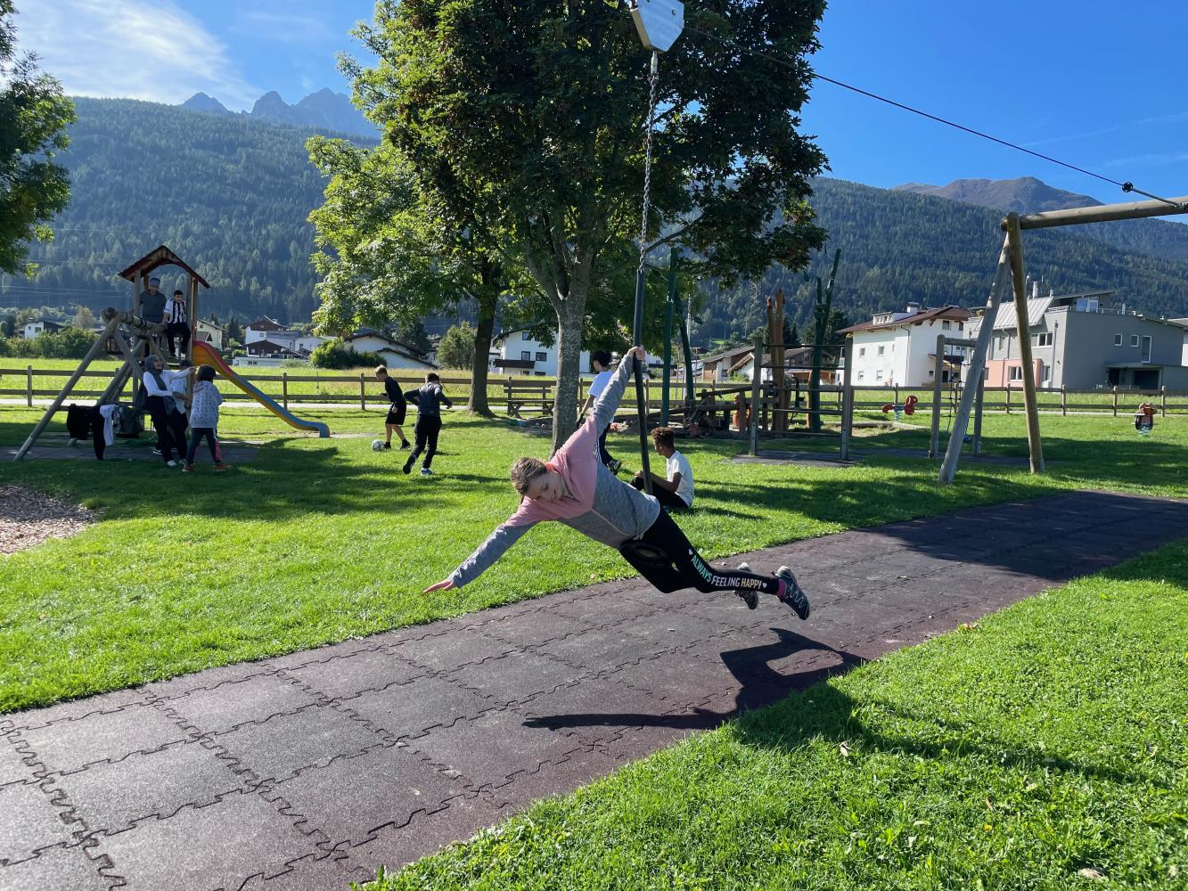 Bei herrlichem Herbstwetter spazierten wir an unserem ersten Wandertag im neuen Schuljahr zum Götzner Spielplatz, wo wir es uns gut gehen ließen! Wir spielten Fußball, kletterten, balancierten und flitzten mit der Seilbahn durch die Luft! Ein wohltuender Ausgleich an der frischen Luft mit viel Spaß und Bewegung!