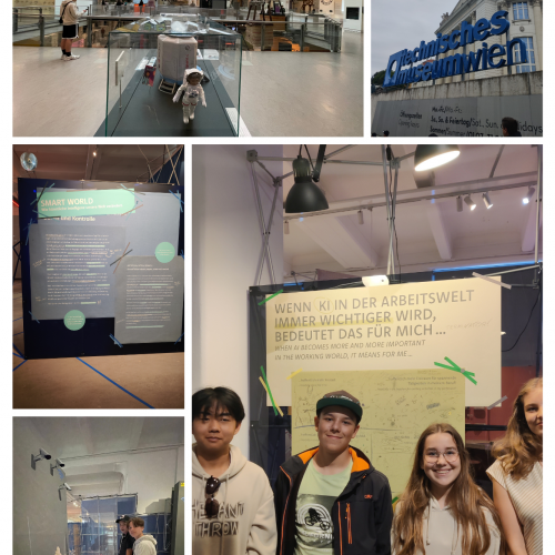 Heute waren wir am Vormittag im Technischen Museum in Wien, wir sind in das Museum rein gegangen dann sind wir alle in den 3. Stock gegangen zu einer KI Ausstellung, sie hieß Smart World. Dort haben wir 20 min Zeit gehabt, dann haben wir uns wieder getroffen und sind Gruppen eingeteilt worden. Wir mussten dann eine Rallye machen, die und die Lehrer*innen ausgeteilt hatten. Wir haben alle einen Stift und einen Plan bekommen und mussten die Zettel ausfüllen, dafür hatten wir nochmal eineinhalb Stunden Zeit. Das Technische Museum ist sehr groß und man bekommt dort viele neue Eindrücke. Es hat uns sehr gut gefallen und man hätte leicht den ganzen Tag dort verbringen können.