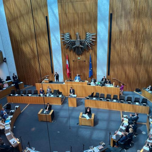 Am Donnerstag durften wir das Parlament unserer Republik besuchen und bei einer Plenarsitzung des Nationalrats als Zuschauer teilnehmen. Unter anderem unternahmen wir auch eine Parlamentsführung die uns Frau Abgeordnete Rebecca Kirchbaumer ermöglichte. Wir erfuhren viele Infos über die Geschichte des Parlamentes und durften den ehemaligen Sitzungssaal des Reichsrats besichtigen. Besonders freute uns, dass wir als Mittelschule Völs persönlich von der Abgeordneten Agnes Totter begrüßt wurden. Zu Beginn ihrer Rede stand das Thema Pädagogik das uns sehr interessierte und betrifft. Der Besuch hat uns sehr gut gefallen und das Parlament ist auf jeden Fall ein toller Programmpunkt gewesen.
