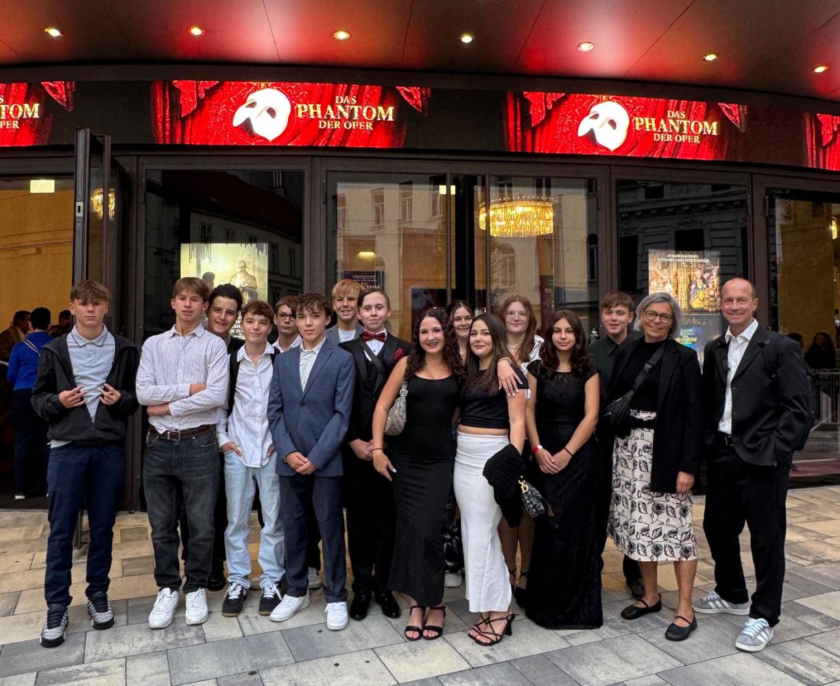 Der Vormittag bot eine Wahlmöglichkeit: Einige Schüler:innen besuchten das Technische Museum, andere das Museum der Illusionen – beide Orte boten Staunen und Lernen auf kreative Weise. Am Nachmittag ging es hoch hinaus: Der Donauturm mit seiner Rutsche zur Aussichtsplattform auf 150 m Höhe war ein echtes Abenteuer. Der Abend war ein kulturelles Highlight: Wir besuchten das Musical „Phantom der Oper“ im Raimundtheater – ein emotionaler und beeindruckender Abschluss des Tages.